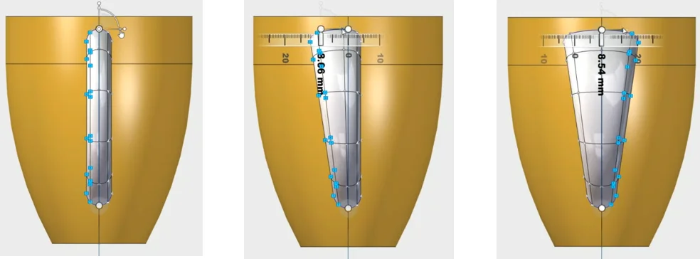 And by turning on Symmetry, any edit or manipulation you perform on the subdivision surface will be mirrored to the other side, ensuring that your design is symmetric and accurate about a plane of symmetry.