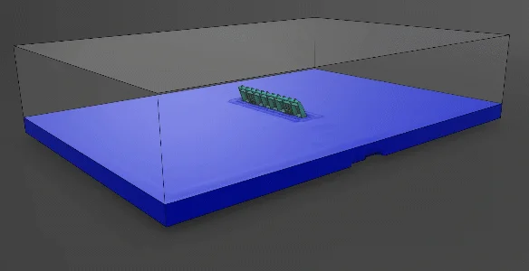 Firstly, the combination of a newer generation CFD solver and the HPC cloud resources means that, in my experience, free surface problems of moderate or high complexity will often solve much faster in SIMULIA Fluid Dynamics engineer than in SOLIDWORKS Flow Simulation. The animation at the start of this article depicting the river dam took only about 30 minutes of solve time on the default cloud instance.