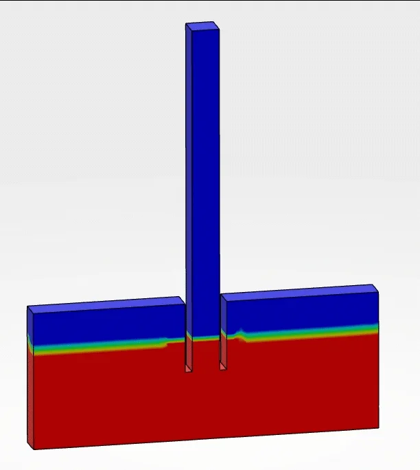In the example above, the end goal is to analyze the river dam’s stresses and deflection subject to the loading it would experience from a flood condition. The CAD model was first imported to SIMULIA Fluid Dynamics Engineer and analyzed as a “Volume of Fluids” or Free Surface simulation.