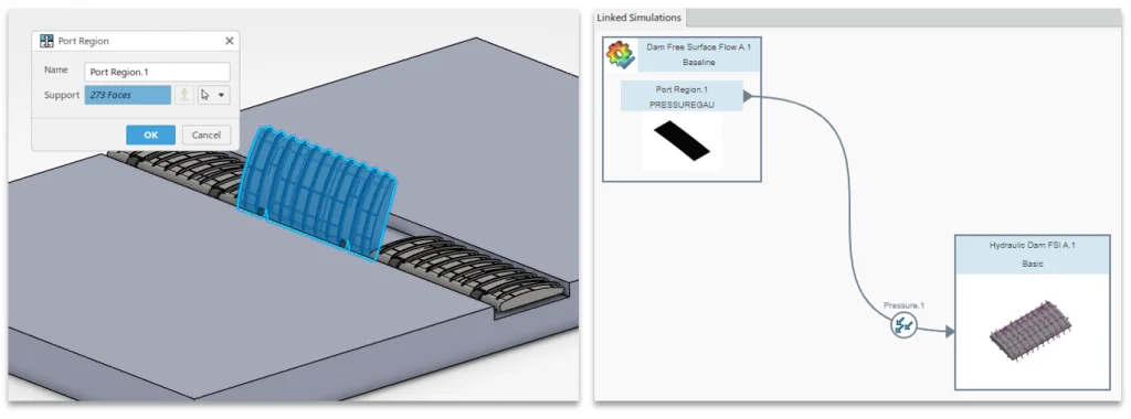 To accomplish this, a “Port Region” was defined on the desired faces from the dam, allowing to link the associated field to a downstream simulation.