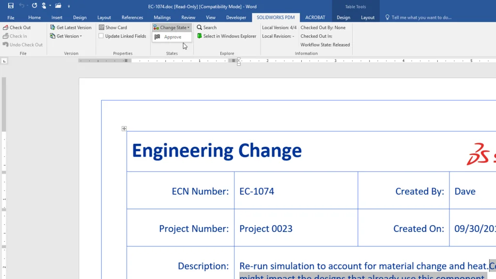 It’s also often helpful to have project-related documents, like budget spreadsheets or proposal documents that surround the design work, accessible in the same place as your CAD data. With Microsoft Office add-ins, PDM Professional is immediately accessible inside applications like Excel and Word where all our business work happens. With PDM Professional, add-ins are also available for the extended SOLIDWORKS portfolio, such as Inspection, Electrical, and PCB.