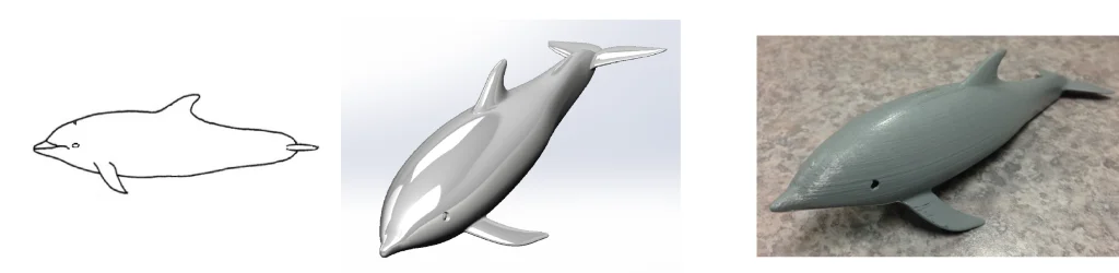 In our case, the “napkin sketch” quickly turns into a Sketch Picture in SOLIDWORKS to start the design. I had a request to create a dolphin model and I decided to make it a case study on going from a 2D sketch to SOLIDWORKS to a 3D print. Being a long-time user of SOLIDWORKS but new to 3D printing, I wanted to pass forward what I already learned to anyone unfamiliar to 3D printing.