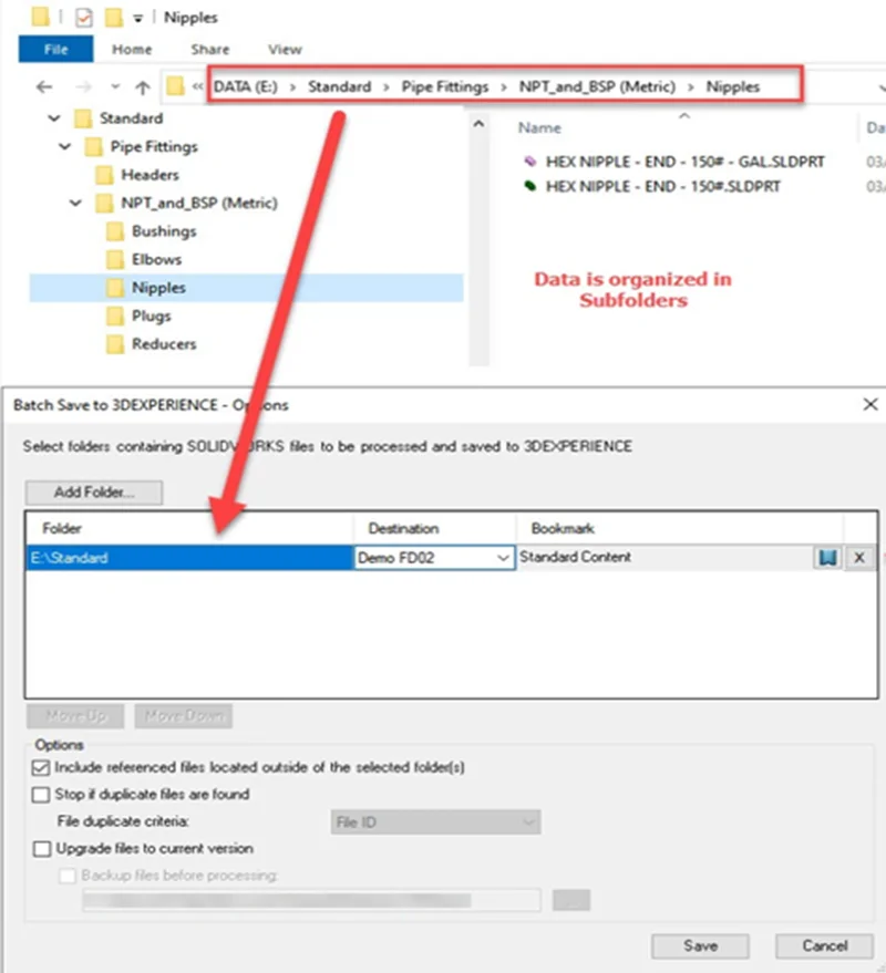 In FD01 we added the ability to specify a Bookmark for new content when uploading in Batch Save to 3DEXPERIENCE so you can keep your data more organized.