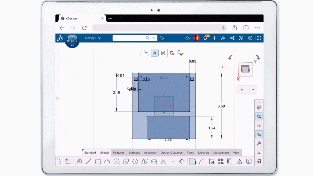 In the first act, Platform Jones deftly escapes peril, and recovers a diskette of R&D code from the old SolidWorks Headquarters in Concord, MA. Unfortunately, Junior Designer II wasn’t so lucky. It’s too bad, because prior to his grievous injury, we saw his adroitness with his tablet and 3D Creator (xDesign), which is part of 3DEXPERIENCE SOLIDWORKS Offers. Available now, this is browser-based parametric CAD on any device, in this case a tablet. There’s a lot to like about modeling in xDesign. All the usual parametric tools like Sketch, and you’ll always be using the quick dimensions, and use them all over. Easily touch to add Fillet. A powerful Edit Entity, to convert sketch shapes. Powerful tools like Convert Entities. Print 3D analysis let’s you visualize the layers and required support material based on my print settings.