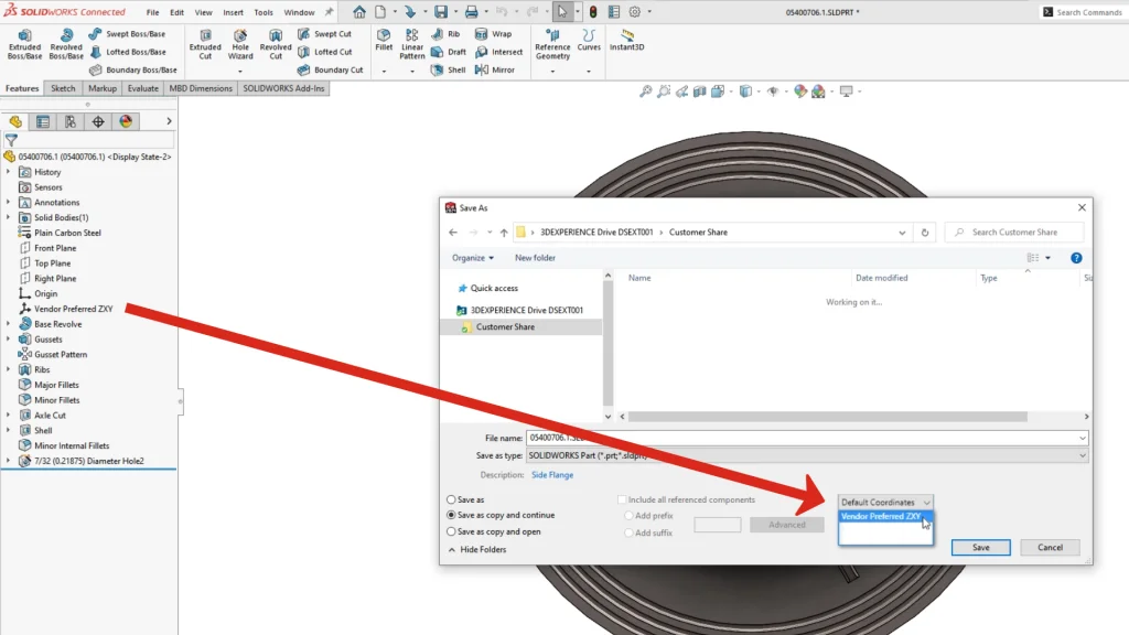 The default coordinate system can now be redefined when using the ‘save as’ based on pre-existing, user-defined coordinate systems. This capability introduces a much more streamlined approach when working with other CAD/CAM systems: