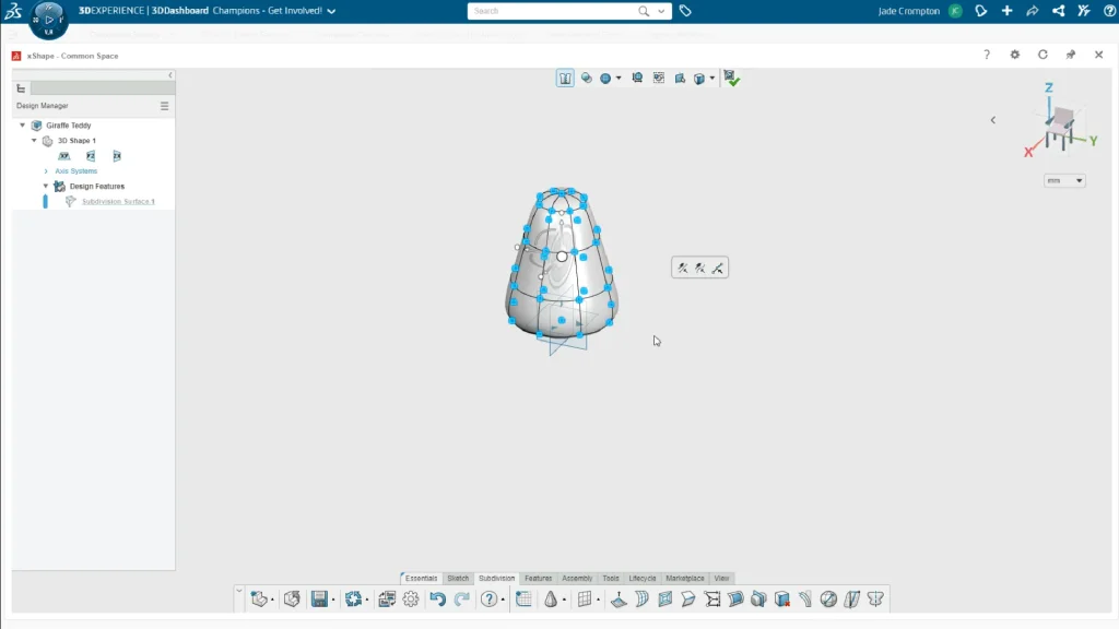 This is a 2-part 3D Sculptor tutorial to create a Giraffe teddy using only sub division shapes. Across both tutorials see how I used the cone and cylinder shapes to create this Giraffe form, and then export it into SOLIDWORKS for editing. Most of the modelling for the Giraffe is very rough and freehand in that I wasn’t too not worried about the overall scale or size of the teddy. Overall sizing could be changed in SOLIDWORKS once the whole teddy was modelled. So, as you follow the tutorial you can copy where I place a sub-division surface and then watch how I manipulate it into place. Your model does not have to be perfect, and you can always go back into each shape you create and edit it as you go along.