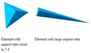 The Aspect Ratio quantifies the quality of the elements, where 1 is a perfectly shaped tetrahedral element and the element shape is worse with a higher Aspect Ratio. You can see this in the image to the left. The aspect ratio is defined as the ratio of the shortest length of the element to the longest length of the element.