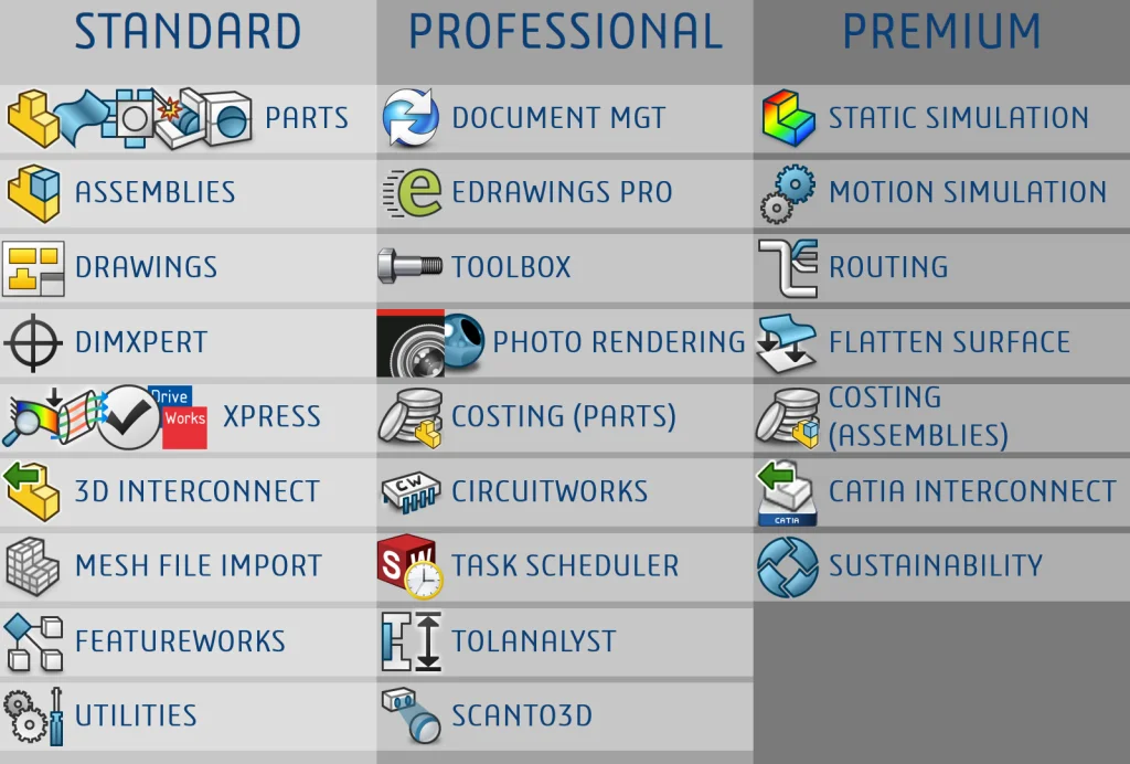 Other times, we choose between three different flavors, colors, or levels of amenity. That “good, better, best” concept applies to SOLIDWORKS CAD, which is offered in Standard, Professional, and Premium configurations. But this can be confusing. What’s in each package? Which one do I have? Are there tools I could be using to do my job better?