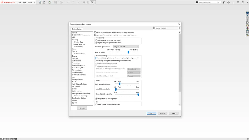 We’ve talked about this one in a couple of blog posts, but I want to remind you because it’s a big timesaver. You can turn on the Resolved Mode option to have your components and assemblies always open in Resolved mode, which opens components and assemblies faster. This new option is quite helpful as it also saves you the time from having to resolve components manually for properties such as mass and weight so you can easily visualize and work with large assemblies.