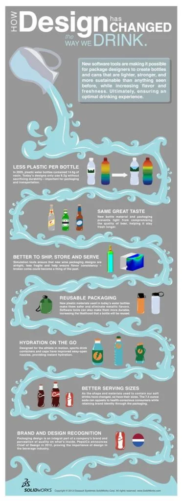 Looking more closely at what it takes to make the bottles and cans that hold our favorite beverages more effective and consumer-friendly, SolidWorks developed an infographic that outlines the innovation process that goes into packaging design. Take a look here and let us know what you think.