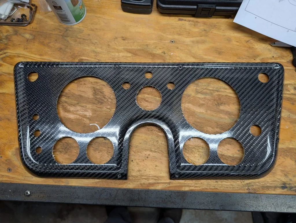 He sourced the blank from Munssey Speed, a Texas company that makes carbon fiber panels for these classic trucks. It had the right shape and edge profile, but no cutouts, leaving the layout completely up to him.