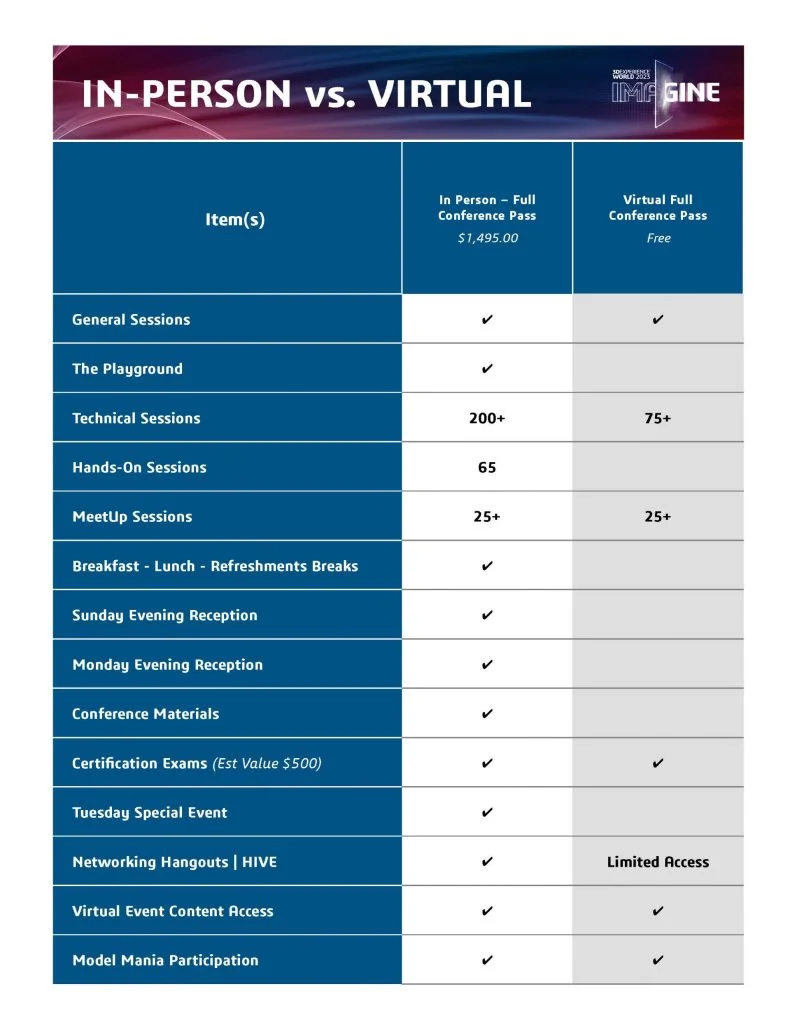 3DEXPERIENCE World is right around the corner! Our teams have been working diligently to prepare an amazing conference for our attendees. We’ve received many questions about what to expect as an in-person attendee vs. a virtual attendee. This is a good question! For those of you on the fence, we hope this blog will give you more details to make that important decision about attending in person or virtual. The matrix below explains the difference between your two options.