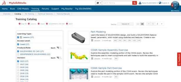 MySolidWorks is filled with lessons and learning paths. A guest account has access to introductory lessons. Educators and students can use their SOLIDWORKS Student Home Use serial number to access 100’s of lessons and learning paths including introduction, certification preparation, sheet metal, weldments, assemblies, manufacturing, electrical, visualize, simulation and composer.