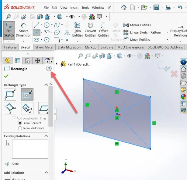 When you are in a FeatureManager, the Help icon, ?, is relevant to the command. SOLIDWORKS also provides short animation tool tips on a feature to show students how to create and modify geometry.