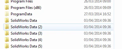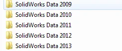 There are some cases where you may need multiple toolboxes on your system. One example is where you need to run multiple versions of SOLIDWORKS on the same machine (e.g. SOLIDWORKS 2011, SOLIDWORKS 2012, SOLIDWORKS 2013, etc.). Each version needs its own unique SOLIDWORKS Data folder. In this case I would recommend giving each folder its own unique name. I tend to suffix the SOLIDWORKS data folder with the year version as per the image, but you can call the folder whatever you like.