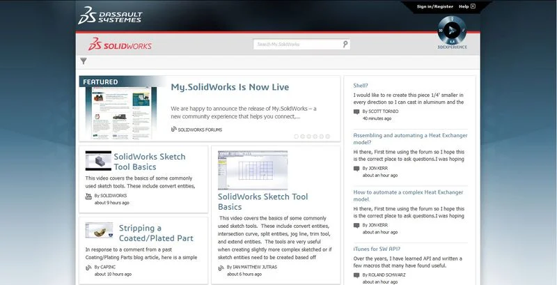 We know that some of you visit the SolidWorks forums regularly, either to stay on top of updates and examples, or to help others with their SolidWorks questions. If you want to keep your skills sharp or offer their expertise to others, My.SolidWorks represents a single place to engage about everything SolidWorks.