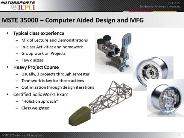 Marie: Garrett, can you tell the SOLIDWORKS community more about the Motorsports Engineering Degree at IUPUI?