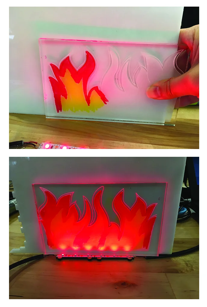 They also started testing LEDs and acrylic to create the fire effect the team wants on the sides of the costume—as though Max-D is setting the road on fire!