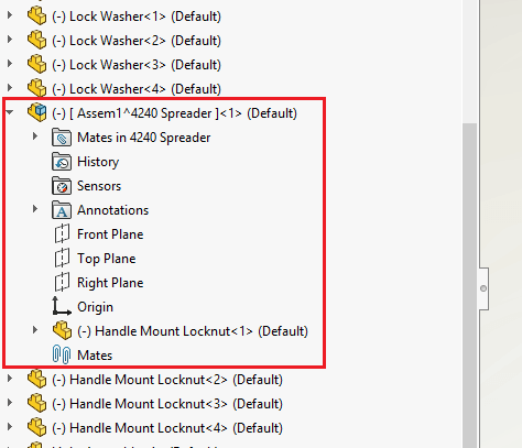 Once the subassembly is mated into position at the top level, RMB on the sub assembly and you are presented with two options as seen here: