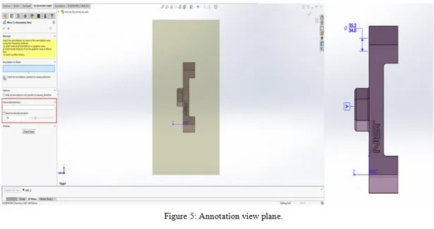 Notice the option boxed in red called “horizontal direction.” Here the user can rotate any annotation view to control how dimensions and callouts are oriented. Simply right click any annotation view in the DimXpert manager and select edit annotation view. The annotation view can be rotated a full 360˚.