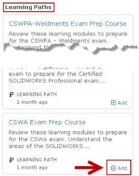 Here is how you can add courses to your MySolidWorks Learning Paths: