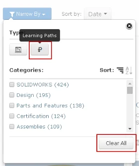 - Under the ‘Narrow By’ button, if ‘Learning Paths’ is not visible under ‘Type’, click ‘Clear All’ to reset the filters.