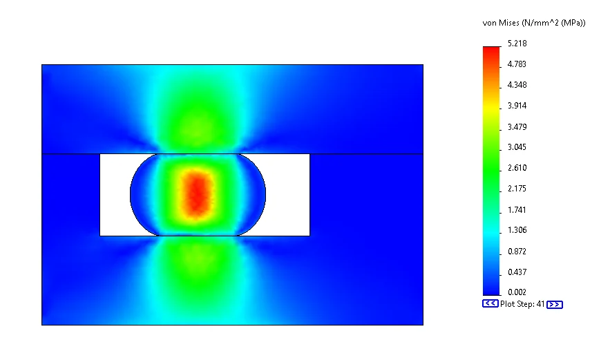 For the results, we can view the stress plot and contact pressure between the O-ring and the plates. These results will help us determine if this O-ring compression will give us a full seal for operational use Furthermore, this results will help use evaluate the best way to keep the two plates together given the high pressure internally.