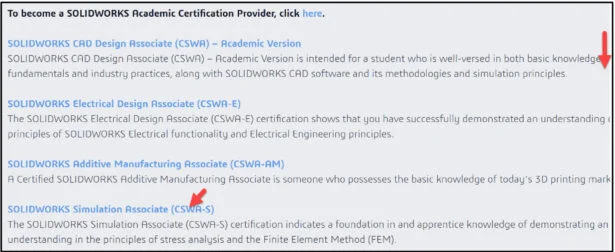 Click the SOLIDWORKS Simulation Associate (CSWA-S) link.