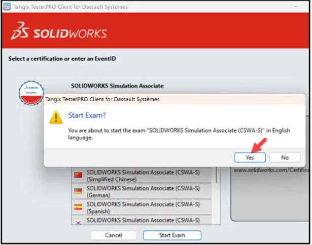 The main requirement for obtaining the SOLIDWORKS Simulation Associate (CSWA-S) certification is to take and pass the on-line proctored (Academic Provider) 120-minute exam which consists of 20 questions. Minimum pass grade is 70% (70 points out of 100 points).