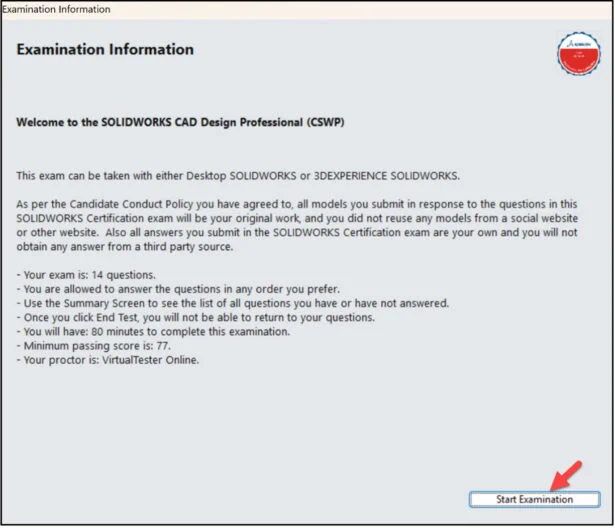 All candidates that pass the three segments of the CSWP certification exam receives an electronic certification, digital badge, business card logo and optional personal listing in the SOLIDWORKS Certification directory.