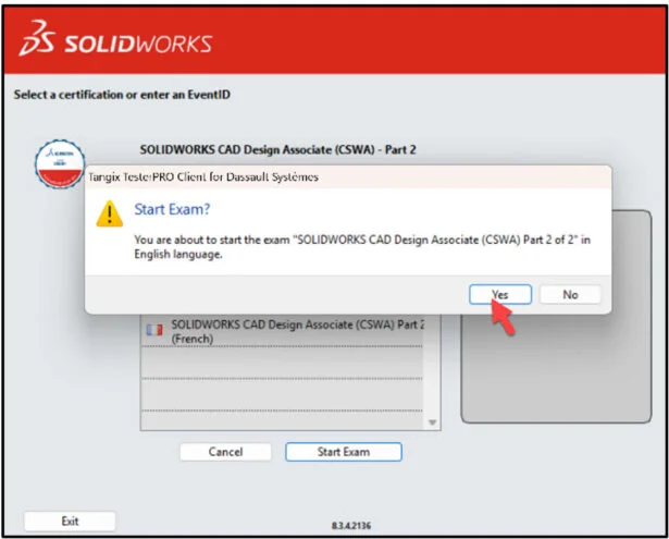 Select SOLIDWORKS CAD Design Associate (CSWA) – Part 2. This will depend on the exam opportunity given by the Academic Provider.