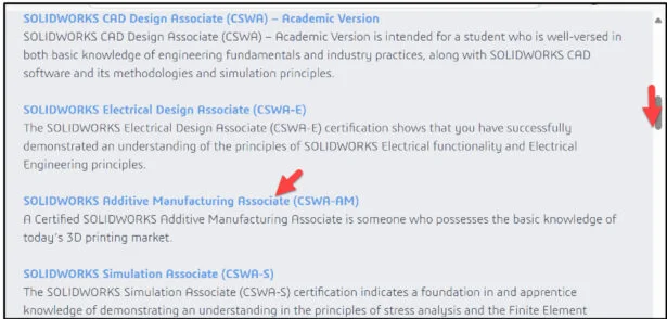Click the SOLIDWORKS Additive Manufacturing Associate (CSWA-AM) hyperlink.