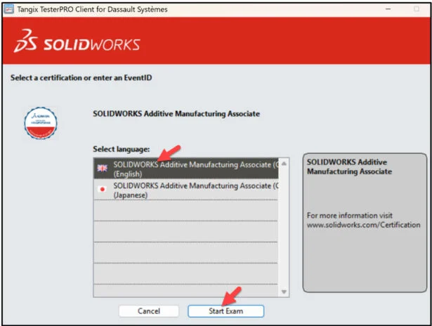 Select SOLIDWORKS Additive Manufacturing Associate (CSWA-AM).