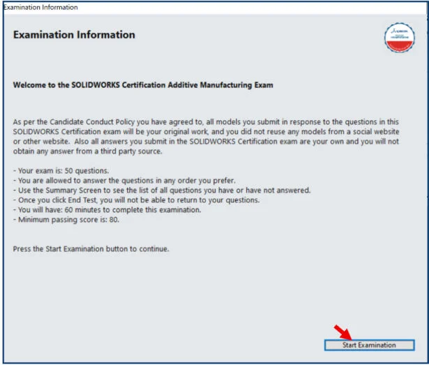 Lesson 9 covers taking the on-line proctored SOLIDWORKS Additive Manufacturing Associate (CSWA-AM) exam. The exam can be taken with either Desktop SOLIDWORKS or 3DEXPERIENCE SOLIDWORKS.
