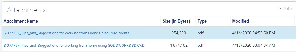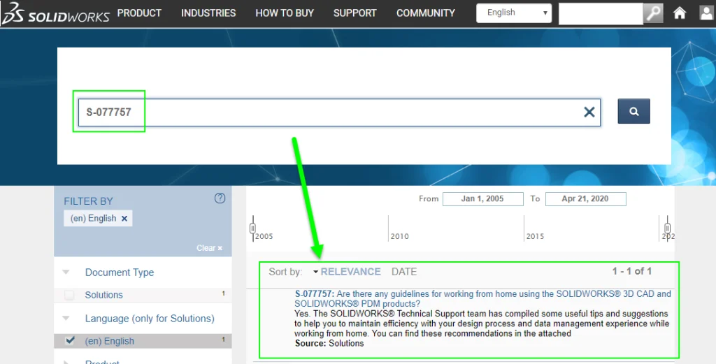 After you select “S-077757 Are there any guidelines for working from home using the SOLIDWORKS® 3D CAD and SOLIDWORKS® PDM products?” you can find the two documents crafted by our SOLIDWORKS® 3D CAD and SOLIDWORKS PDM technical experts.