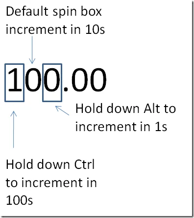 SolidWorks gives you more control… by holding down Ctrl or Alt you can further change how the spin box increments your dimensions. Take a look at the image below: