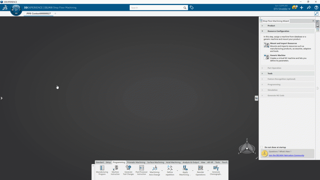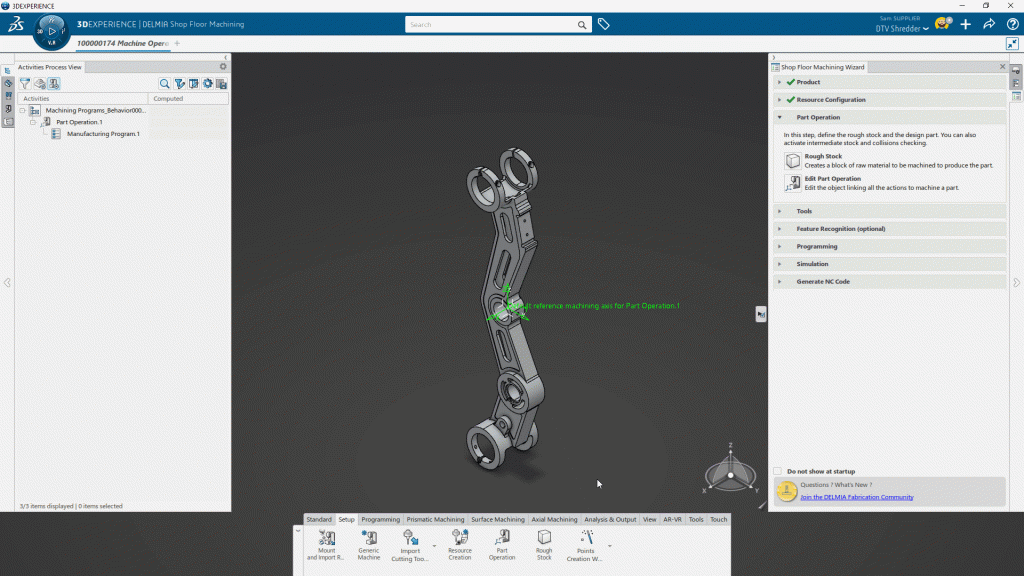 We’ll start, like in most apps on the 3DEXPERIENCE Platform, by simply searching for the part we want to fabricate. From there, we can dive right into the Shop Floor Machining Wizard to help guide us through the initial setup.