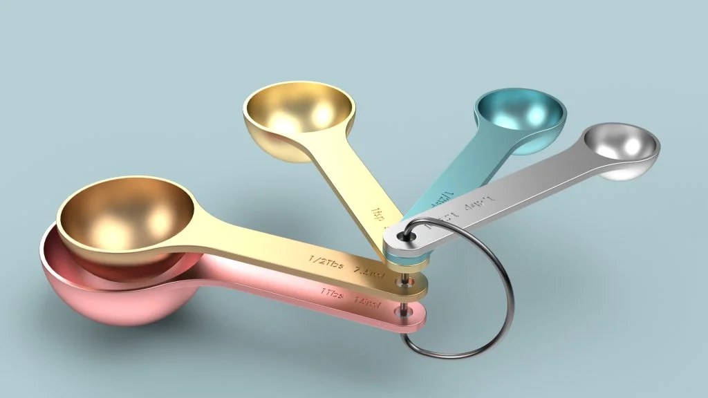 The spoons in this tutorial have been designed to the milliliter measurements but are also represented in tablespoon and teaspoons. You will also see how the outward shell tool and sketch text tool was utilized for the spoons scoop and how the measurement details were added to the spoon handles.
