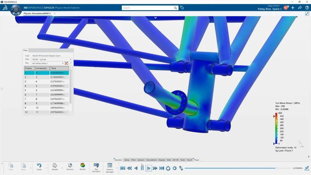 While it’s true this gives Mike an understanding of worst-case scenarios, with an ability to observe stresses and deformation at a variety of intervals/scales, it also allows him to make decisions that go beyond physical risk mitigation. For example, he discusses in this second video how 3DEXPERIENCE Works Simulation enabled him to consider changing the structure of the landing gear overall to cut weight and costs.
