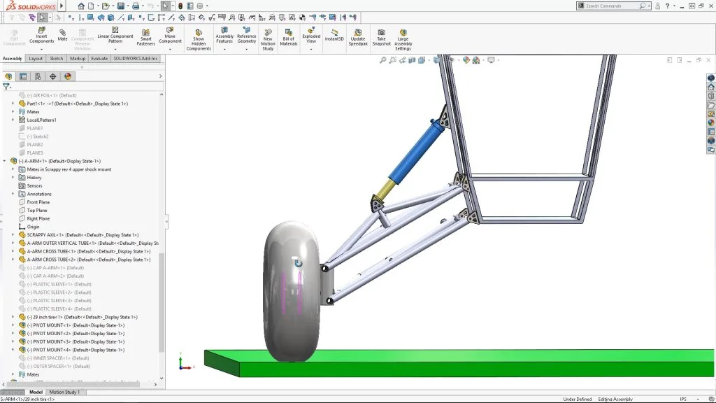 With 3DEXPERIENCE Works Simulation, Mike and his team are able to test things that ‘could’ happen in the real world with his planes. In the examples here, Mike talks to his viewers about how he’s able to make decisions on the landing gear assembly for Scrappy by running an analysis on the landing gear assembly on different loading conditions.