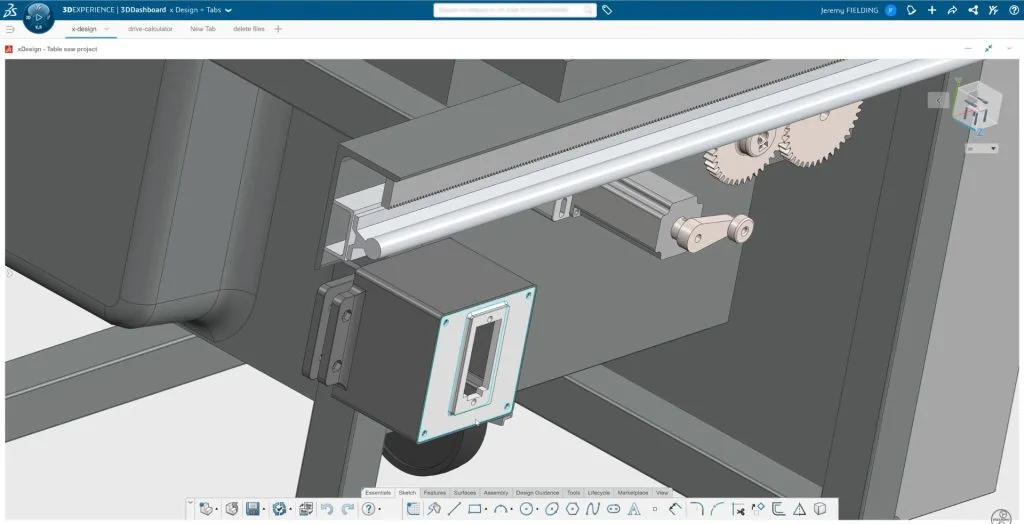 This included the cabinet design, an area for the dust collector chute, the rack and pinion setup, certain housings and mounts, and much more. As a cloud-based mechanical design application, xDesign was a great fit, because it allowed Jeremy to seamlessly access and add to these design elements – from his PC or his iPad. He didn’t need to make crude measurement notes, either, as he could measure components and spacing dynamically from his tablet while he was working.