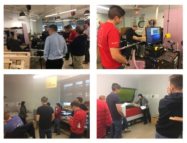 The team members who led the workshops are mentors in the 3DEXPERIENCE Lab who teach other DASSAULT SYSTEMES employees and visitors to the FabLab how to use the various machines. Chinloo Lama led a laser cutting and engraving workshop, while Sal Lama and Albert Hernandez taught team members and other employees how to use the ShopBot.