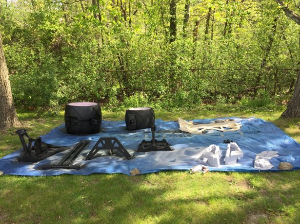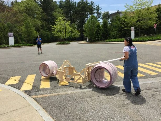 Three weeks ago, Chinloo and Sal Lama traveled to Ben’s hometown to test out the costume’s frame and dry fit it to his wheelchair. Ben’s caretaker, Amanda, pushed the wooden frame around her driveway and found it was relatively easy to push around, “Like pushing a grocery cart,” she said. She thinks she’ll have a relatively easy time maneuvering Ben in his costume, both for the reveal and for Halloween.