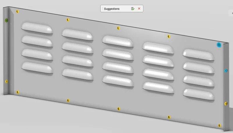 Let’s say you have eight fasteners that need to be placed into a sheet metal enclosure; instead of manually inserting each one, the Mate Helper will identify all the holes of the same sizes and automatically drop them in after you’ve manually done the first one. You just select the Mate Helper icon and click on a hole on a face of the sheet metal part, and it will find the locations on the same face and drop the fasteners in all at once. Essentially it does the thinking for you by replicating all the mates and components. No more fussing around with patterns or spending all day placing individual fasteners, sit back, relax, and let the Mate Helper do your work for you.