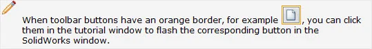 Clickable Icons Inside of the Tutorial: Being new to the software package, this was probably one of the best features I have seen in instructions. It allowed me to get used to the toolbars and their layouts in the SolidWorks work space. It also helped me to memorize where items were as I went along.