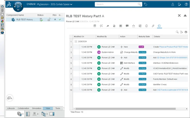 Last but not least, the MySession panel has a History tab that allows you to track all actions performed on a model.