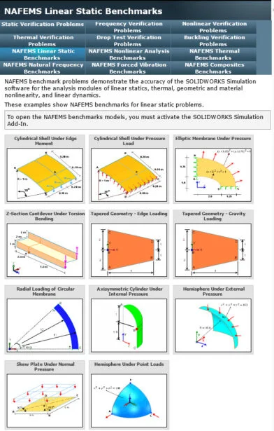 Want to learn more about the NAFEMS Benchmarks? SOLIDWORKS Simulation contains NAFEMS Benchmarks Tutorials.