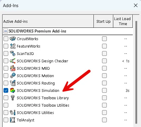 Open a part in SOLIDWORKS. Note: You need to open any part to display the simulation tools.