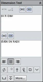 When “Solid Leader, Aligned Text” is set, a second text entry field appears within the Dimension Text group box. Text entered into this field will appear under the solid dimension line. Parenthesis and Inspection outline may be applied to the top and bottom independently from each other.
