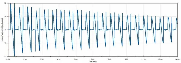 For this post I made a Newton’s Cradle. It was a fairly easy build. The frame was just a couple sweep features. The spheres were made using the revolve feature and then another sweep feature was utilized to create the arc that the string goes though. The string was created using another sweep feature and then little spheres were created on the ends to simulate knots. The main reason for making this was for the motion analysis that was applied to it after it was built. In order to do the motion analysis, the SolidWorks Motion add-in needed to be activated. Next the motion study tab was selected at the bottom of the window. Gravity was added in to the study in the negative y-direction. The next part was challenging at first. This was trying to figure out how to get the spheres to simulate as if they were solid, thus not allowing them to pass through each other. The contact feature was used to solve this problem. A solid body contact was created for each pair of neighboring spheres. For simplicity, I deselected the material and friction options under each contact pair. I also set the restitution coefficient to 1. Once I had all 4 contact pairs set up I was almost ready to begin. Before I could run the study I needed to move one of the end spheres to a position other than where it would be at rest. At this point I ran the study and achieved the results seen in the video above. After running the study, you are able to generate plots of velocities, displacements, and other such quantities using the results obtained. Shown below is the x-component of the velocity of two of spheres which are in contact with each other. Take note that the velocity decreases as time increases which is what to be expected if you were to use a Newton’s cradle in real life. I hope you enjoy.